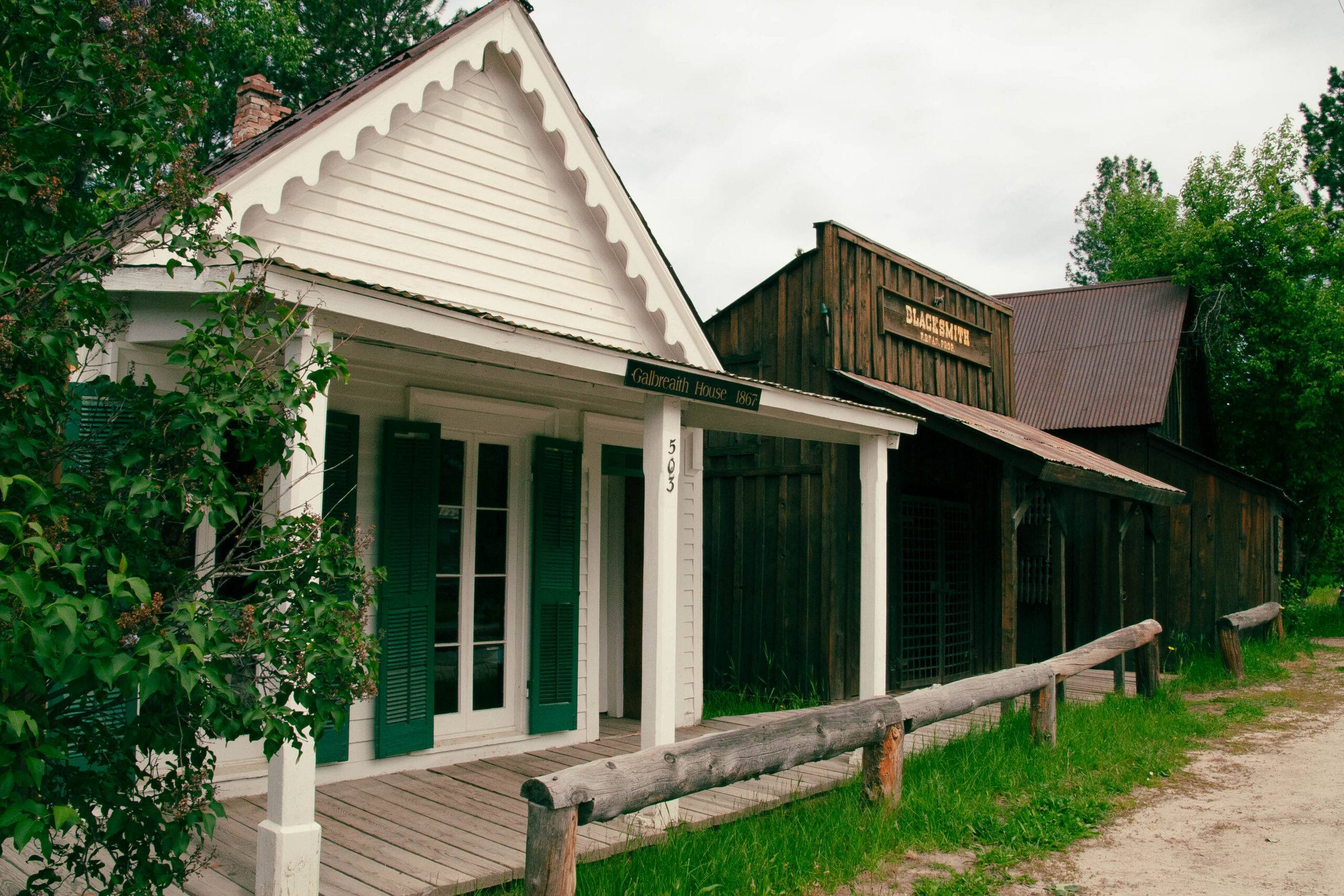 This is the oldest residential structure in Idaho City. It has many of the architectural details common to early Idaho City homes – board-and-batten siding, rough sawn lumber, a steep gable roof and a front porch with simple milled posts.