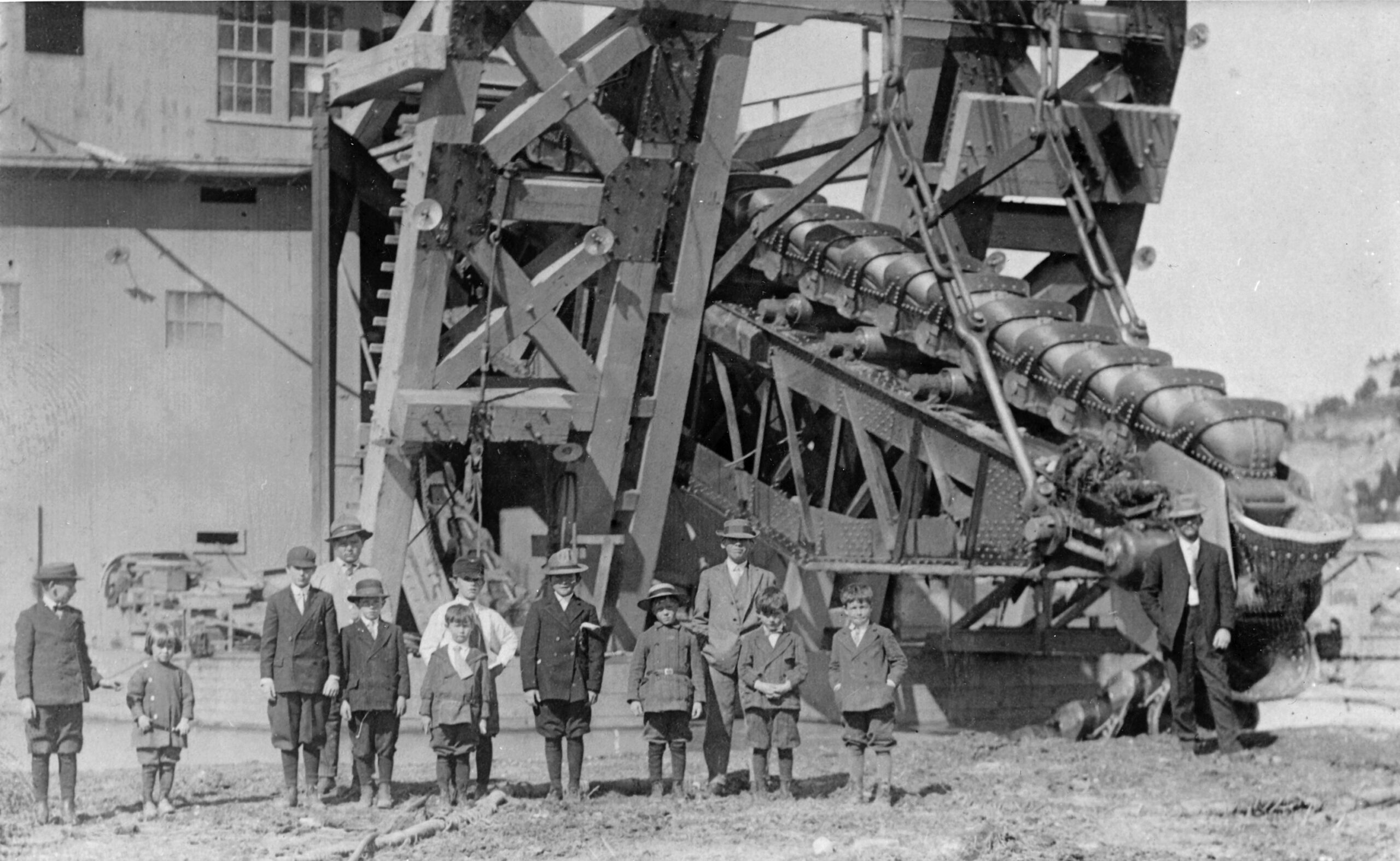 Dredging is a type of placer mining that allows for larger scale mining. These machines operated on the same principle as gold pan mining, gold is heavy. The buckets would scoop from the river, carrying the rock, dirt, and hopefully gold. The material would be rinsed and filtered through screens, with gold settling to the bottom.